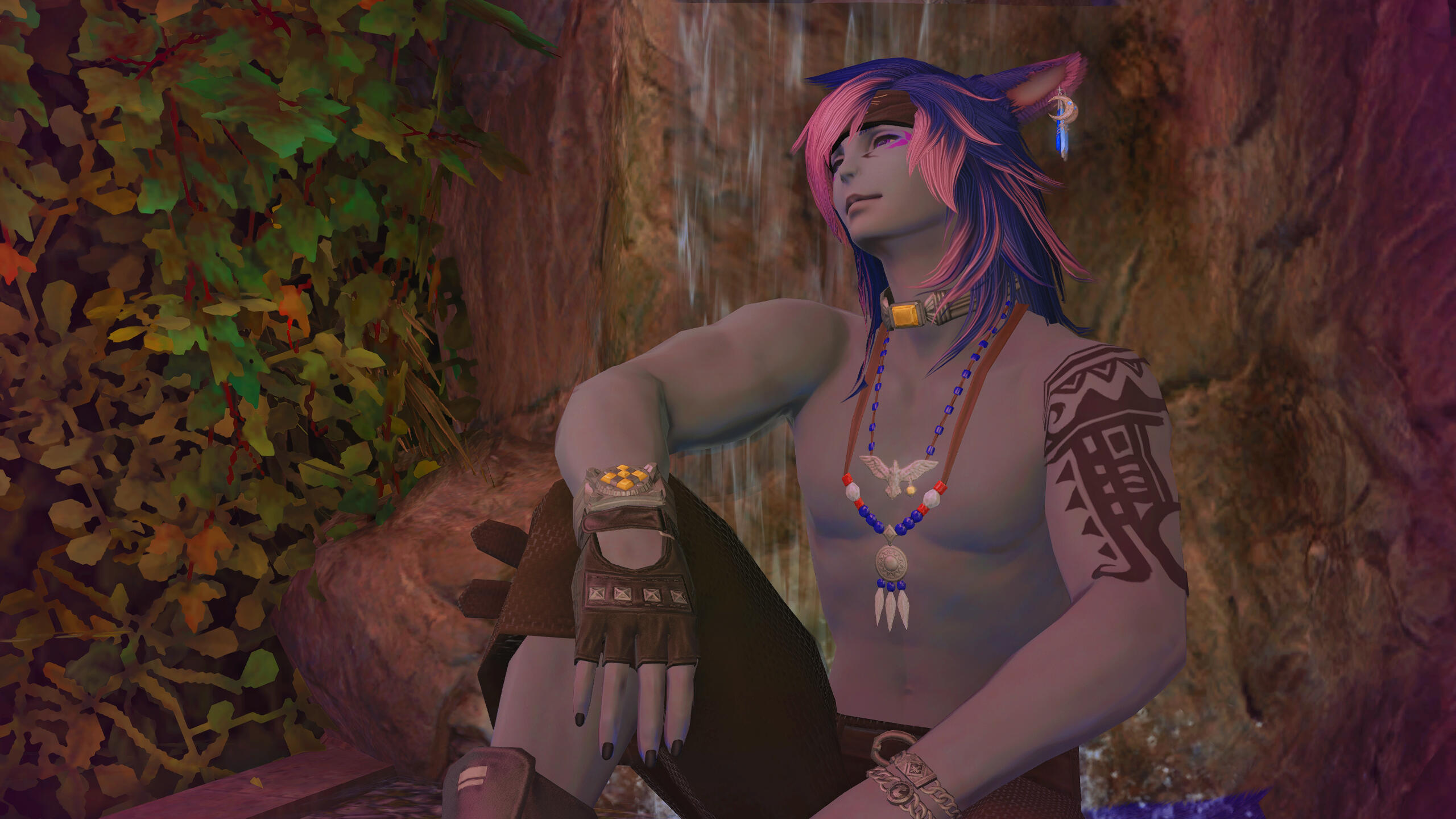 Currently 22 summers old, Ind'ra is a Keeper of the Moon Miqo'te that resides in La Noscea and spends most of his time fishing off the coast of Costa del Sol. He was born in Thavnair, but has no memories of it because his mother moved him and his four brothers to Old Sharlayan to live with his now step-father when he was just a few summers old.